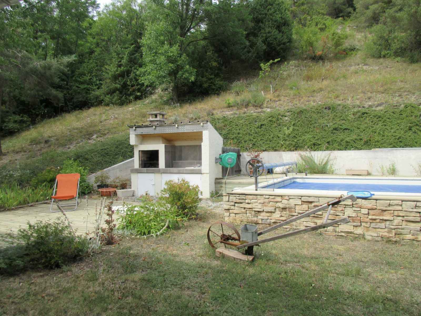 Elle dispose d'un grand terrain avec piscine, de 150 m² habitable + un appartement de 80 m² (possibilité indépendant, rendement locatif), vue dégagée et ensoleillée.