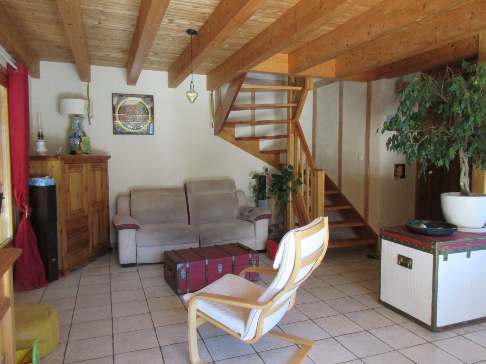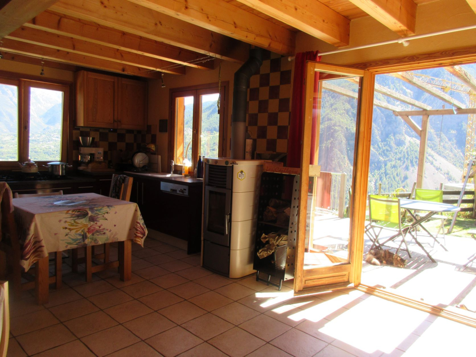 Pas de travaux à prévoir, le chalet en ossature bois est bien isolé, dispose d'un poête mixte (bois et granulés) et de panneaux solaires pour l'eau chaude.