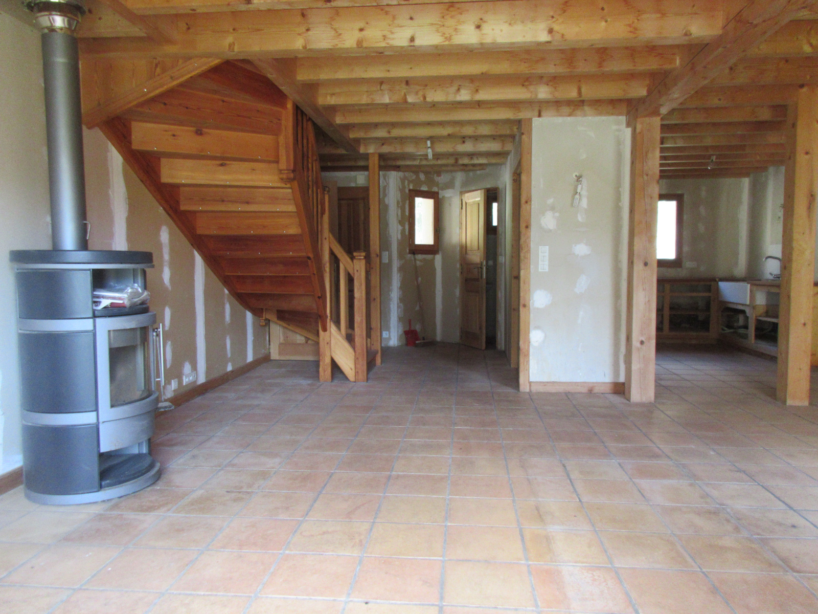 Vous disposerez d'une pièce de vie ouverte sur la cuisine, un coin bureau avec vue, mezzanine, 3 Chambres, une salle de bains, 2 wc et un grand espace dortoir sous les combles.